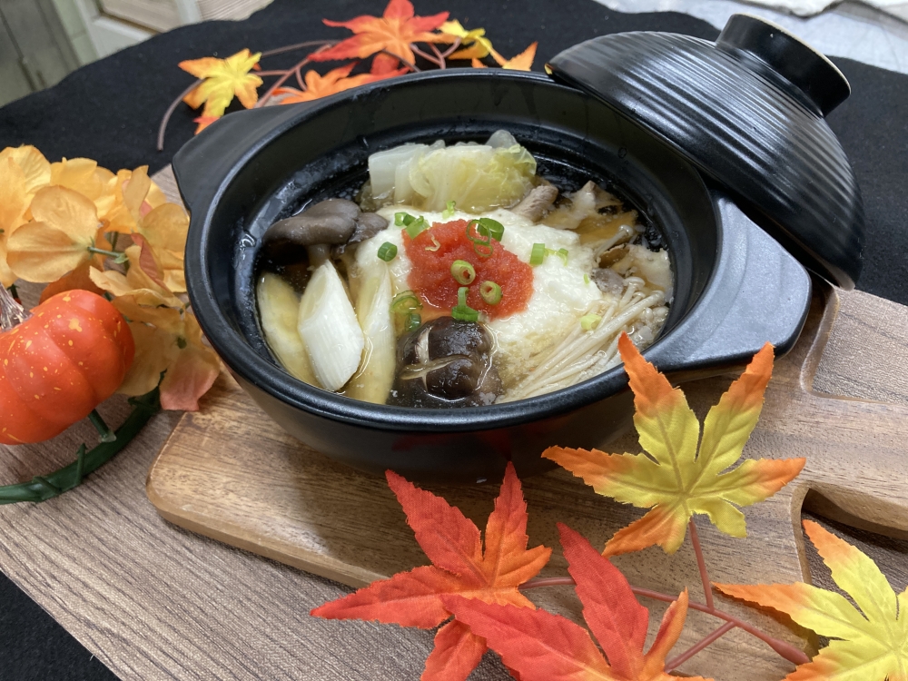 とろろの効果で出し汁にとろみが付き、食べると体の芯までポカポカに温まり、明太子のプチプチした食感がクセになるお鍋です。