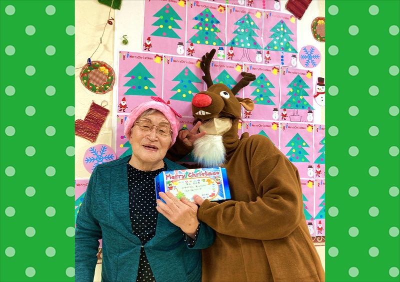 サンタとトナカイからプレゼントを受け取ると、童心に帰ったような笑顔で、皆様とても喜ばれていました。