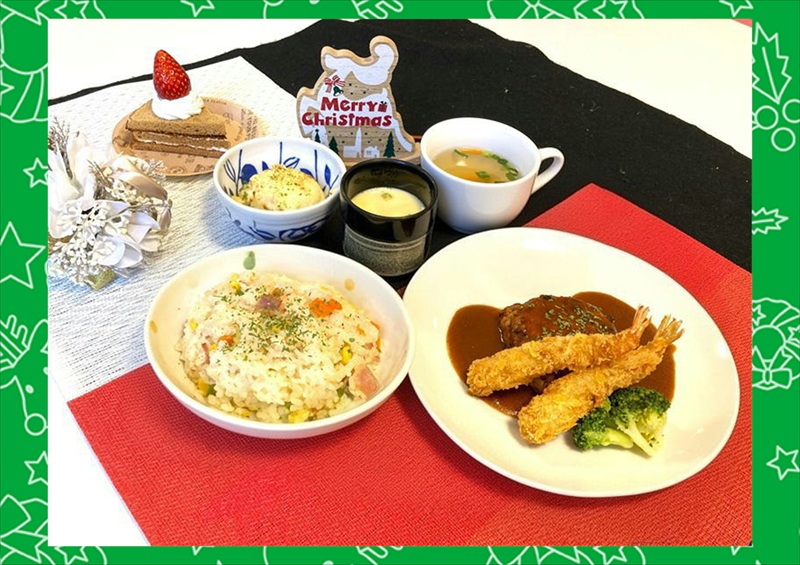 昼食は、大きなエビやグラタン、ケーキなど、クリスマスメニューをご用意し、ご好評をいただきました。