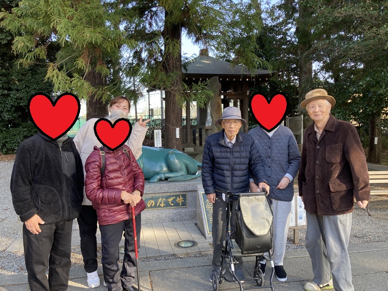 『なで牛』という像があり、皆様思い思いの所をなでていました。