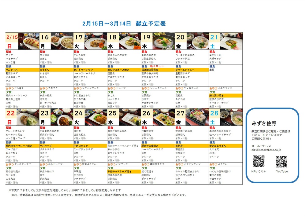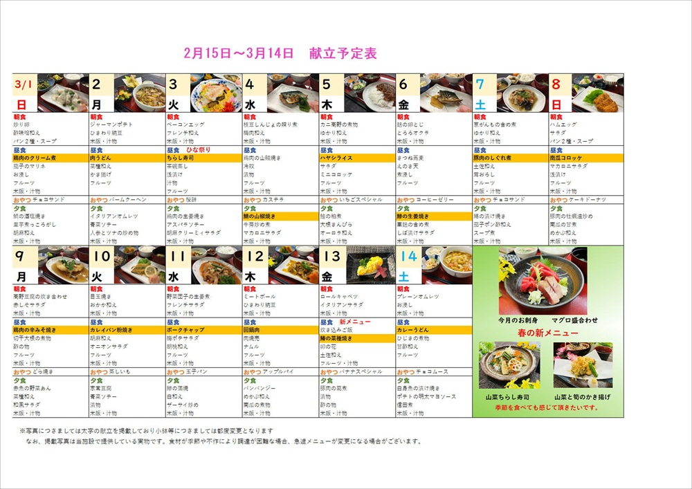献立表 2月15日~3月14日