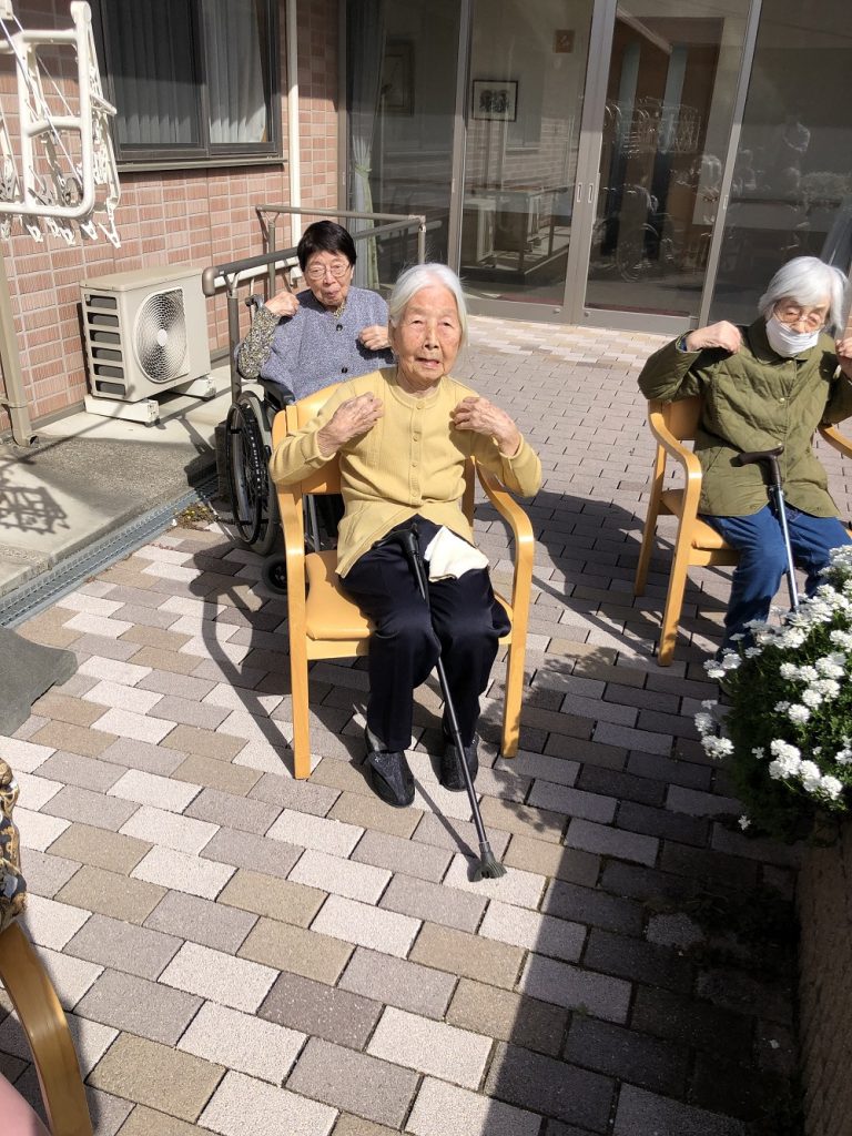 お天気ポカポカ♪ 投稿日:2023年4月13日 2023年4月13日 とってもいい天気となり中庭に出てみたら 暖かくて気持ちが良かったです。 今日は青空教室、外で体操をして そのままお茶会を楽しまれました。