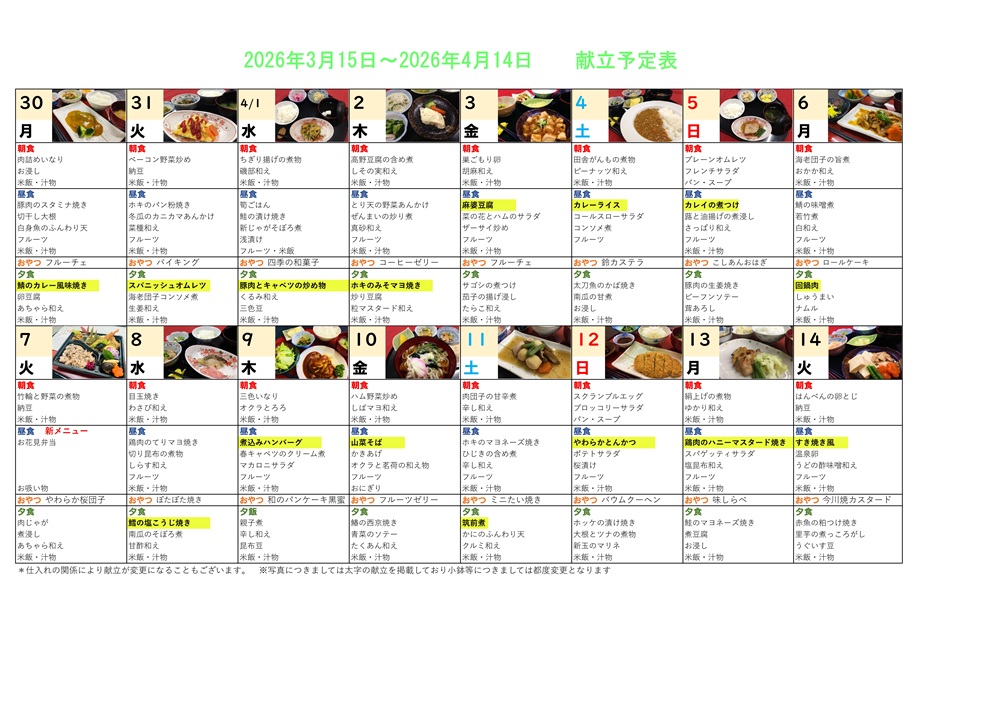 献立表 3月15日~4月14日